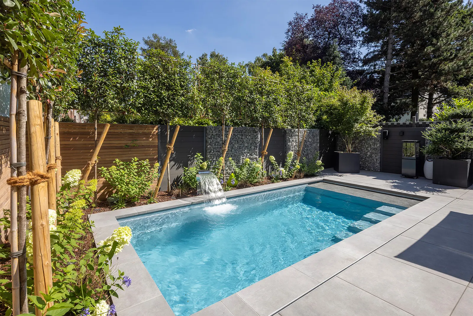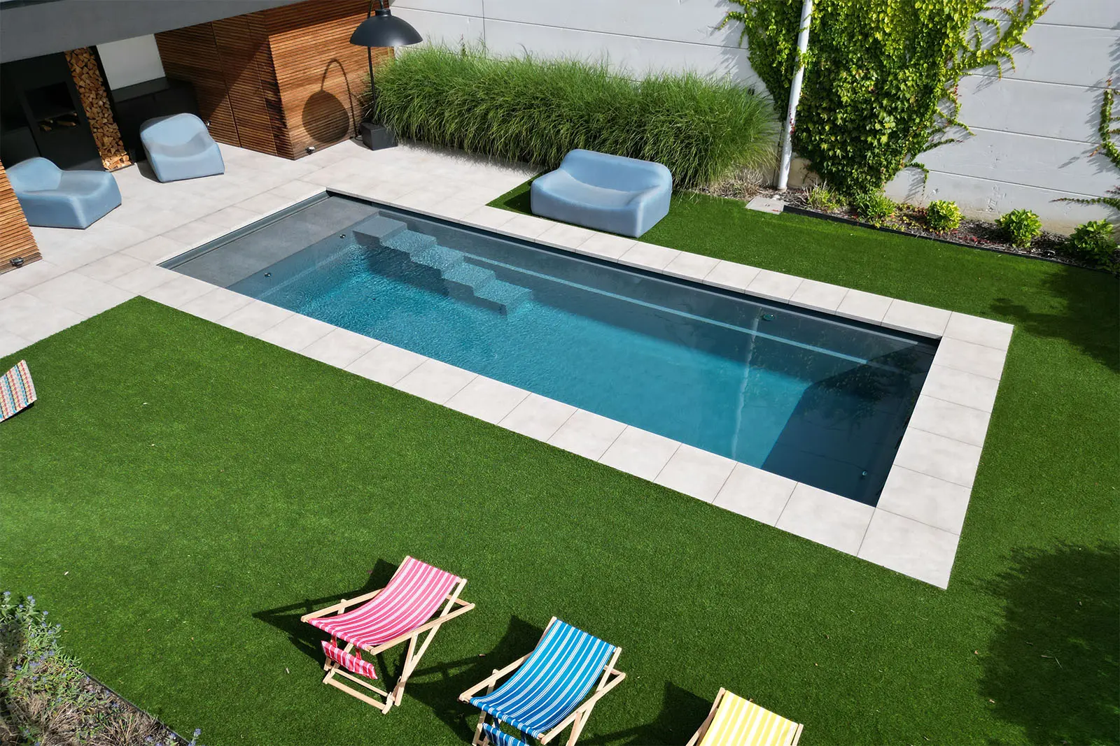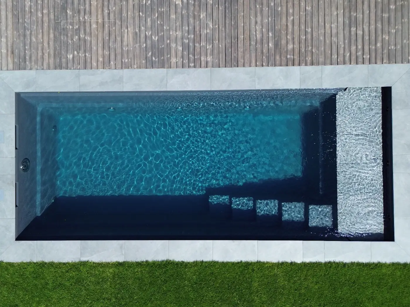 Encore ist der perfekte Swimmingpool für schmale Grundstücke und zeichnet sich durch seine präzisen geraden Linien und sein minimalistisches Design aus.